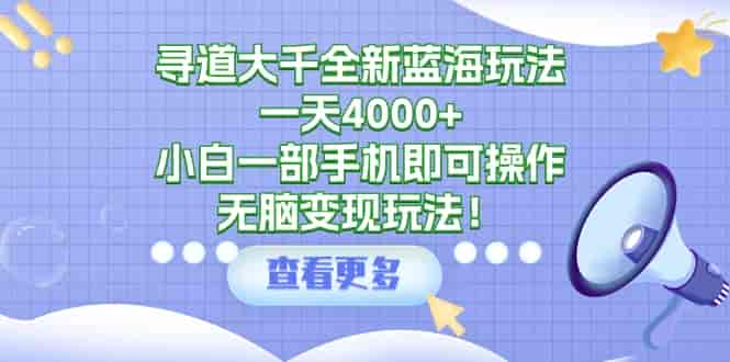 今天带来的项目是一个稳定玩法“寻道大千全新蓝海玩法,一天4000 ,小白一部手机即可操作,无脑变现玩法!”