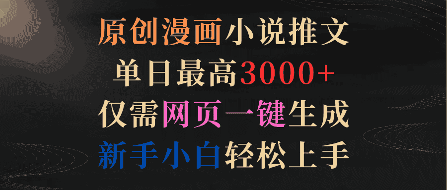原创漫画小说推文,单日最高3000+仅需网页一键生成 新手轻松上手