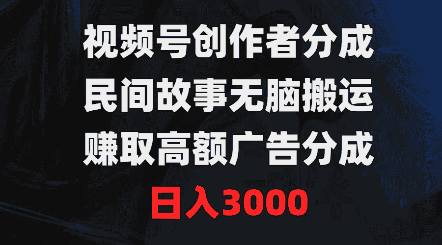 今天给大家带来的项目是《视频号创作者分成,民间故事无脑搬运,赚取高额广告分成,日入3000》
