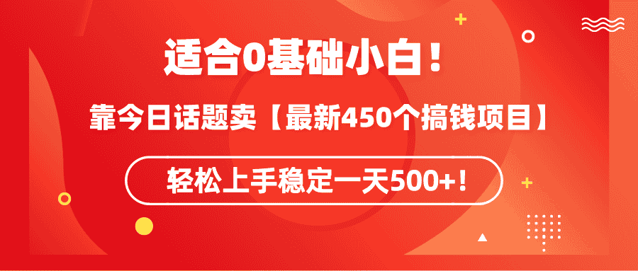 大家好!今天给大家带来的这个项目是《靠今日话题玩法 卖【最新450个搞钱玩法合集】,轻松上手稳定一天500 !》非常适合0基础小白上手操作