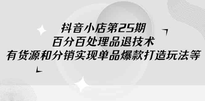 抖音小店课程25期:100%不出无货源违规分销技术,有货源和分销实现单品爆款打造玩法