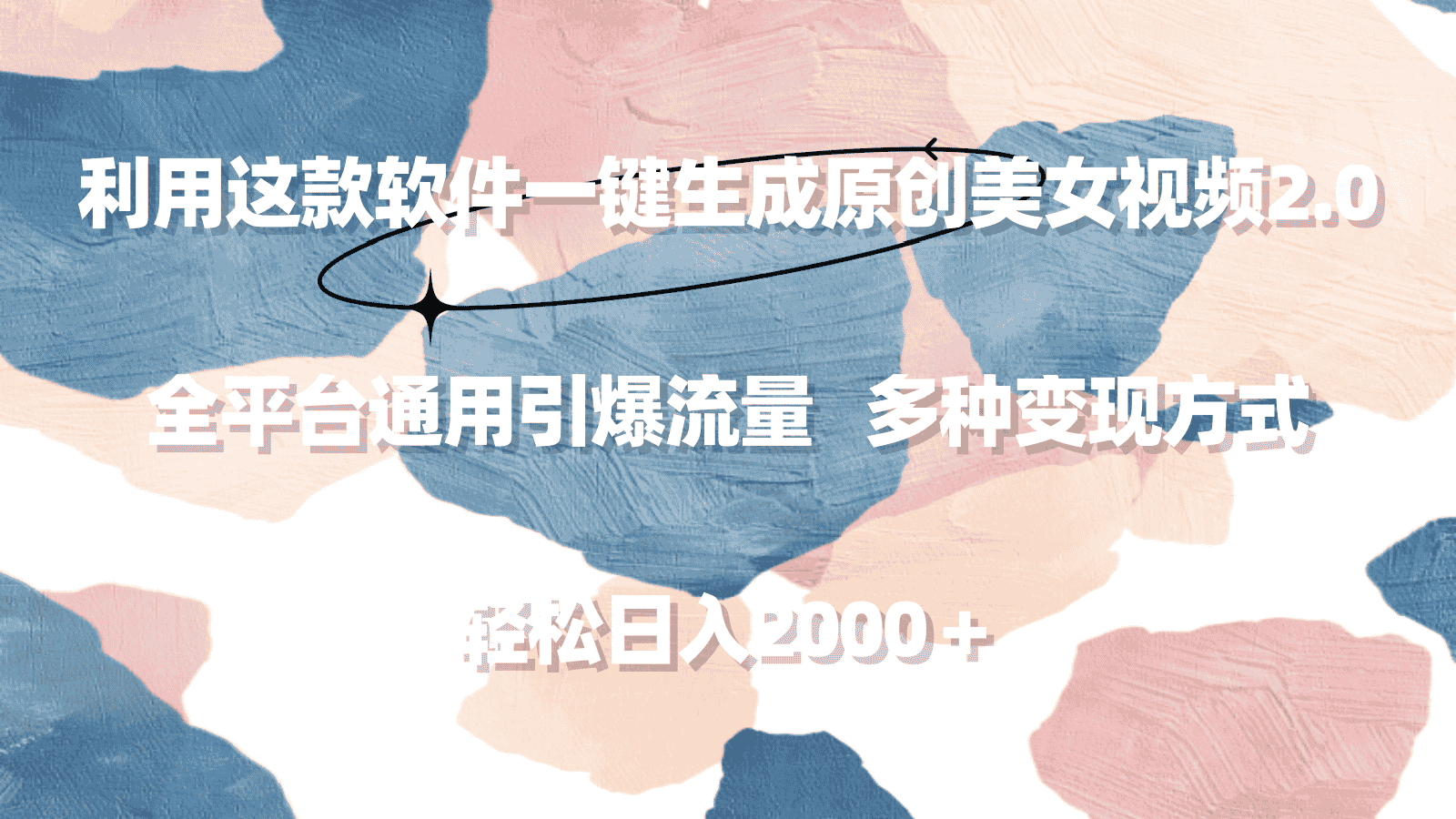 今天给大家带来最新项目“利用这款软件一键生成原创美女视频2.0,全平台通用引爆流量,多种变现方式,轻松日入2000+”