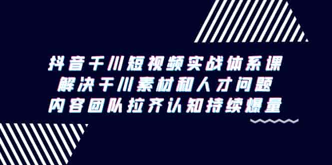 抖音千川短视频实战体系课,解决干川素材和人才问题,内容团队拉齐认知…