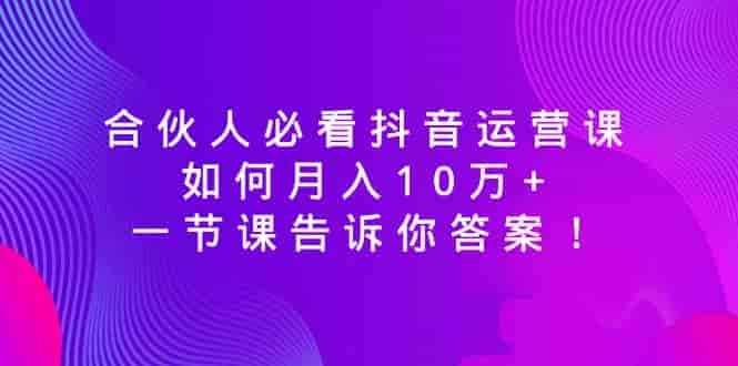 合伙人必看抖音运营课,如何月入10万+,一节课告诉你答案!