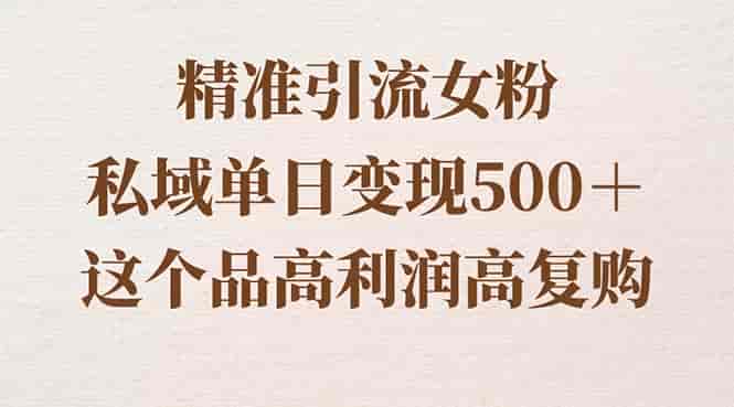 引流精准女粉,私域单日变现500+,高利润高复购,保姆级实操教程