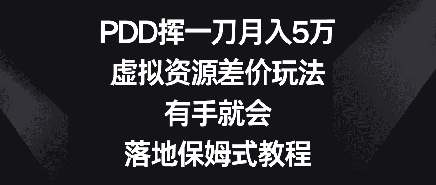 虚拟资源差价玩法,PDD挥一刀月入5万,有手就会,落地保姆式教程