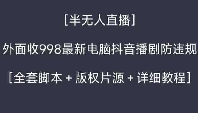 外面收998新半无人直播电脑抖音播剧防违规【全套脚本+版权片源+详细教程】