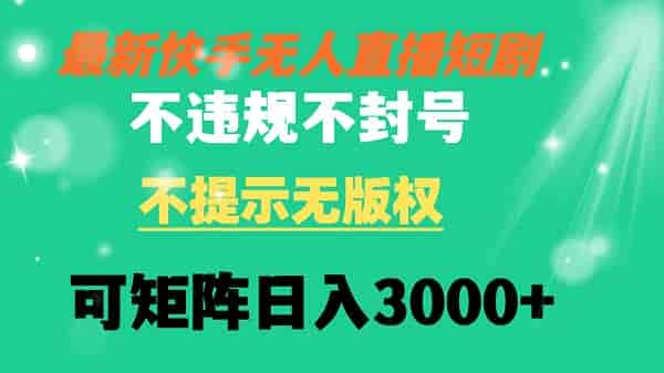 快手无人直播短剧 不违规 不提示 无版权 可矩阵操作轻松日入3000+