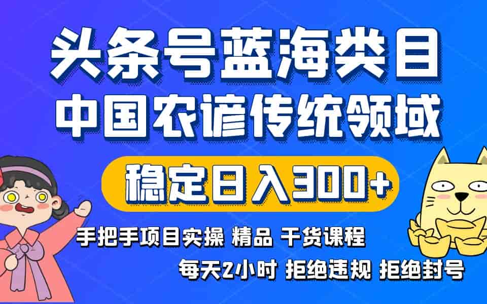 [项目营销] 头条号蓝海类目:传统农谚领域实操精品课程,拒绝违规封号稳定日入300+