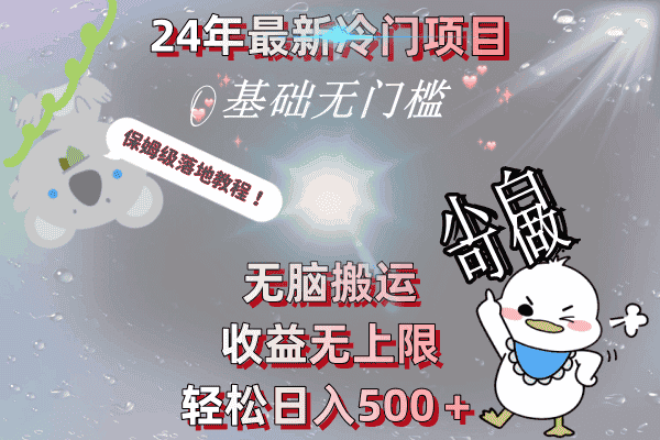 2024最新冷门项目,无脑搬运,收益无上限,轻松日入500+,保姆级落地教程!