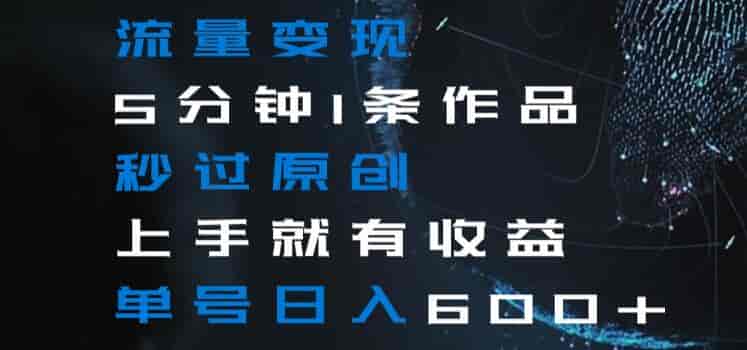 流量变现5分钟1条作品秒过原创上手就有收益单号日入600+【揭秘】