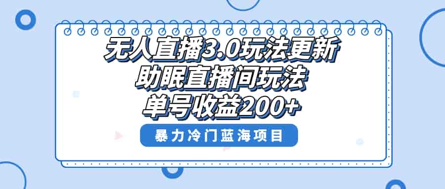 无人直播3.0玩法更新,助眠直播间项目,单号收益200+,暴力冷门蓝海项目!