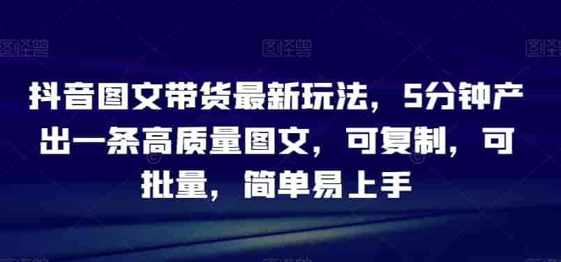 抖音图文带货最新玩法,5分钟产出一条高质量图文,可复制,可批量,简单易上手【揭秘】