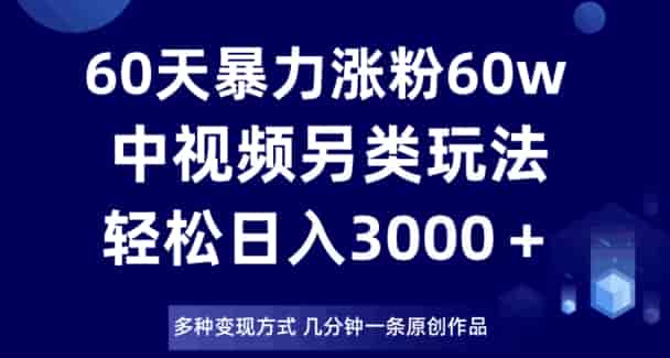 60天暴力涨粉60W,中视频另类玩法,几分钟一条原创作品多种变现方式,日入3000+