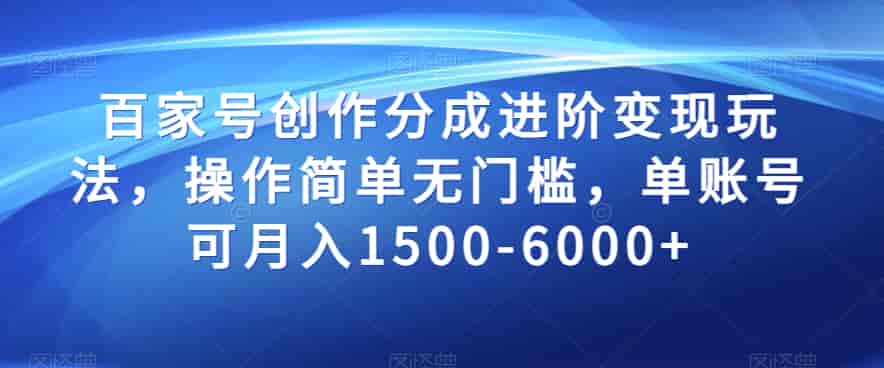 百家号创作进阶变现秘籍,轻松月入1500-6000,操作简单无门槛!