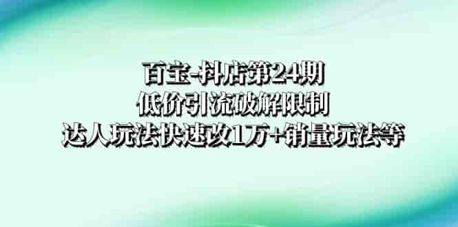 [项目营销] 百宝-抖店第24期:低价引流破解限制,达人玩法快速改1万+销量玩法等