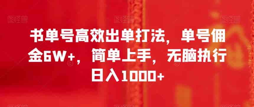 书单号高效出单打法,单号佣金6W+,简单上手,无脑执行日入1000+【揭秘】