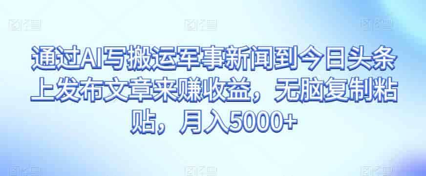 通过AI写搬运军事新闻到今日头条上发布文章来赚收益,无脑复制粘贴,月入5000+【揭秘】