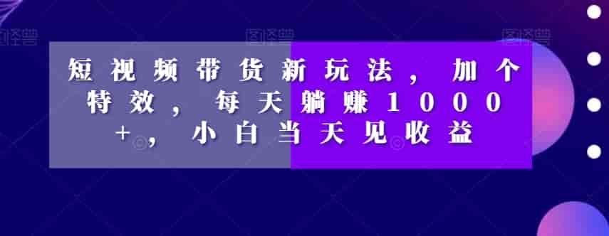 短视频带货新玩法,加个特效,每天躺赚1000+,小白当天见收益【揭秘】