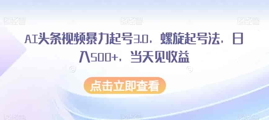 AI头条视频暴力起号3.0:螺旋起号法轻松日入500+,当天见收益!