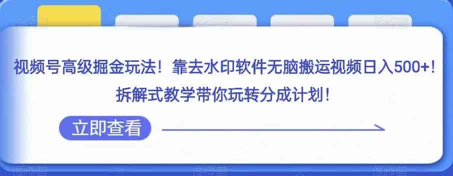 视频号高级掘金玩法,靠去水印软件无脑搬运视频日入500+,拆解式教学带你玩转分成计划【揭秘】