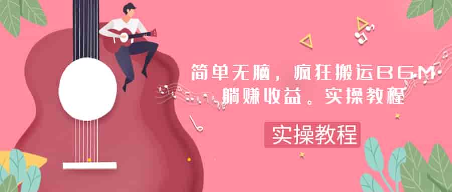 简单无脑,疯狂搬运BGM,一次躺赚30刀收益。实操教程