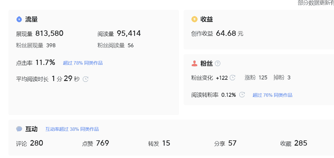 注意:这个是当天爆了一篇,9W的收益是64.68 加上其他小爆文,凑起来是90.49