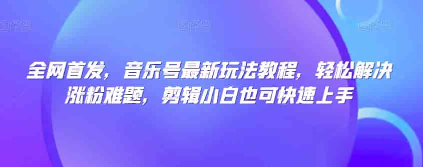 全网首发,音乐号热门玩法揭秘,剪辑小白也能轻松解决涨粉难题