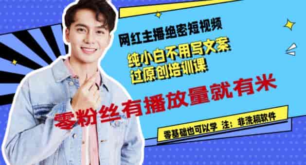 网红主播绝密短视频,纯小白不用写文案过原创培训课,零粉丝有播放量就有米