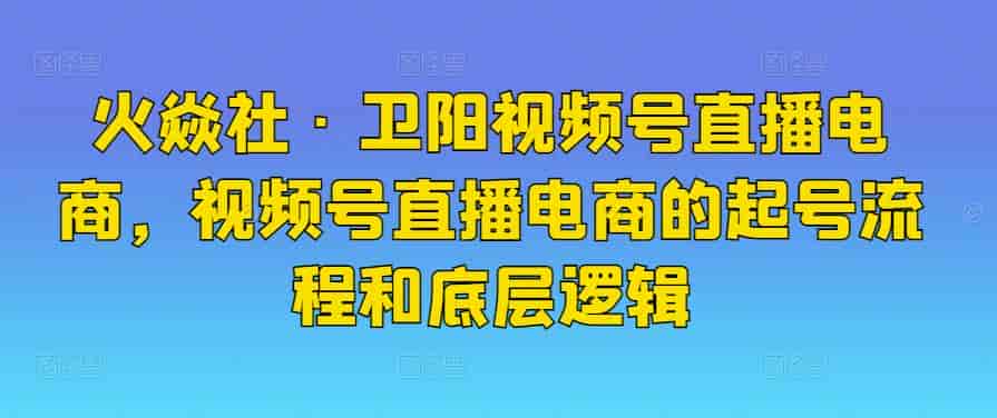 [项目营销] 火焱社·卫阳视频号直播电商,视频号直播电商的起号流程和底层逻辑