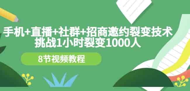 手机+直播+社群+招商邀约裂变技术:挑战1小时裂变1000人(8节视频教程)