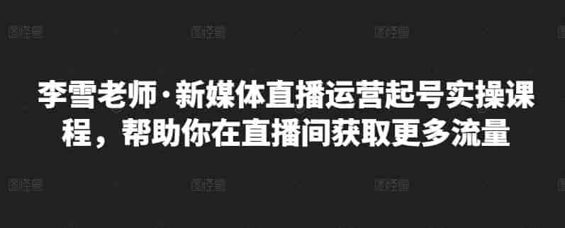 李雪老师·新媒体直播运营起号实操课程,帮助你在直播间获取更多流量