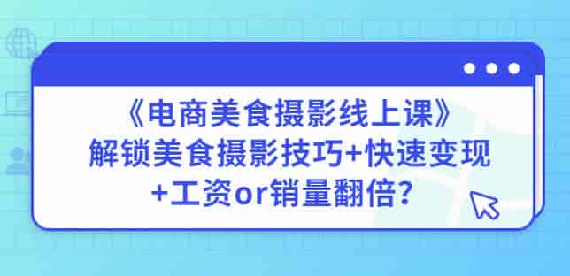 陈飞燕《电商美食摄影线上课》解锁美食摄影技巧+快速变现+工资or销量翻倍