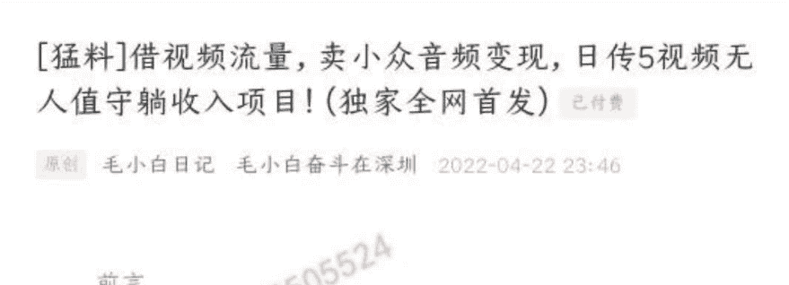 毛小白·借视频流量,卖小众音频变现,日传5视频无人值守躺赚项目!