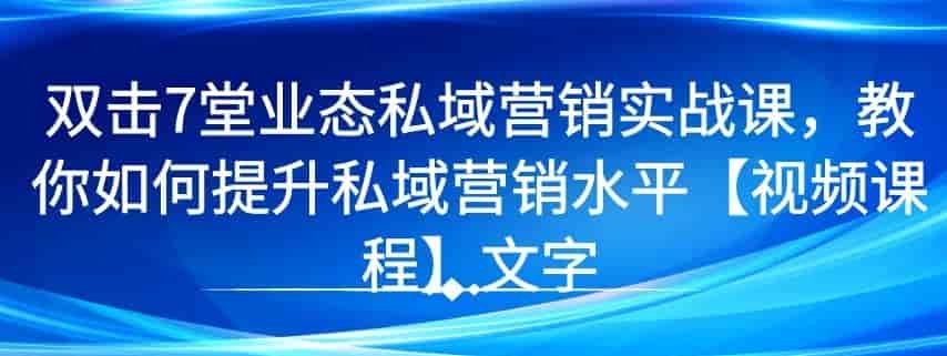 7 堂业态私域营销实战课,教你如何提升私域营销水平【视频课程】