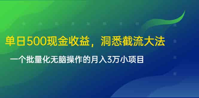 单日500现金收益,洞悉截流大法,一个批量化无脑操作的月入3万小项目