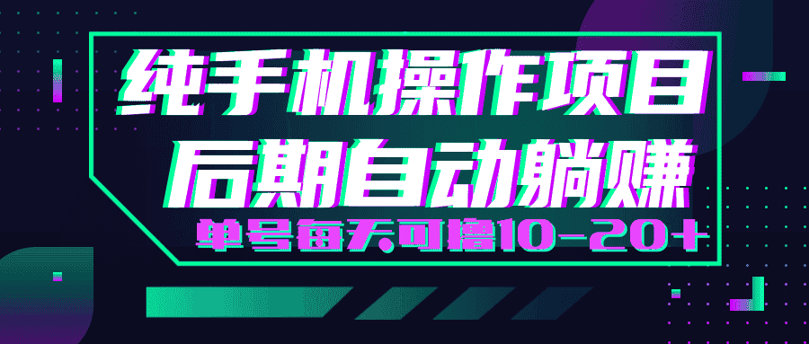 [项目营销] 轻松撸钱小项目,每天只需动动手,即可轻松赚钱单号每天可撸10-20+【视频教程】