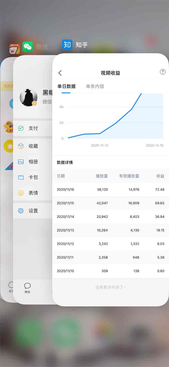今天的知乎视频号视频收益单价也更高,1W播放的单价有18-20元的现金收益,历史累积发过的视频也会随着时间量变带来收益的质变。