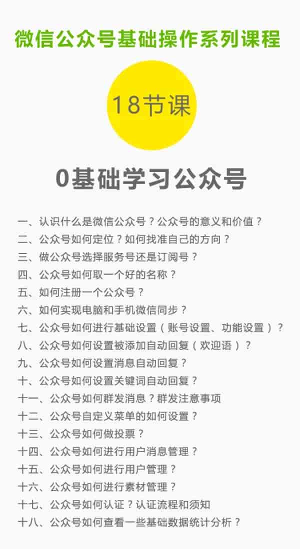 [项目营销] 零基础教会你公众号功能操作、平台搭建、图文编辑、菜单设置等(18节课)
