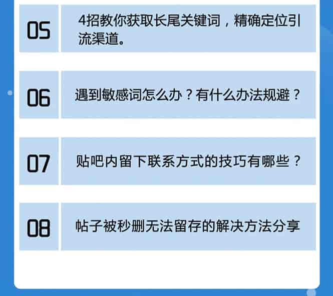 整个课程的关键步骤,狼叔在讲课的时候也会直接用手机投屏给大家手把手实操演示,保证你学到的是市面上最新最全的贴吧引流操作技巧。