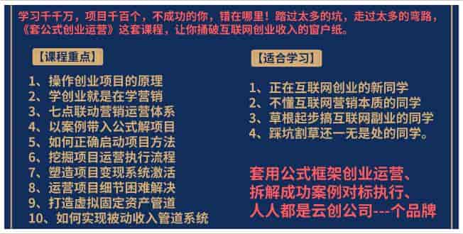 [项目营销] 《套公式创业运营》捅破互联网创业收入窗户纸,让天下没有难做的副业