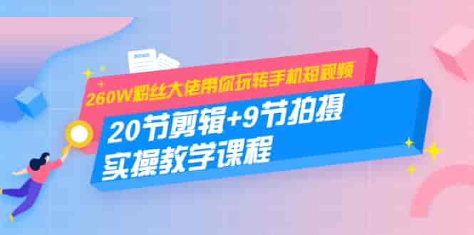 260W粉丝大佬带你玩转手机短视频:20节剪辑+9节拍摄 实操教学课程