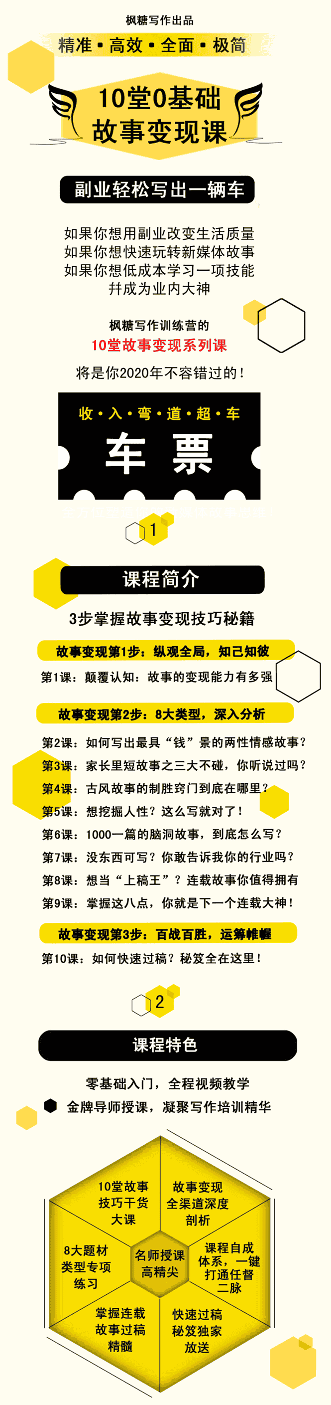 枫糖写作10天0基础故事变现课:从不会下笔,到每月多赚5000+(10节视频课)