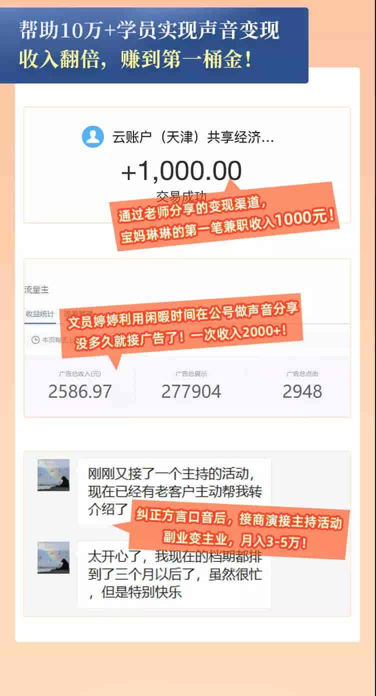 [项目营销] 每天15分钟,在家做副业【把声音变成钱】声音修炼/变现资源/月入过万