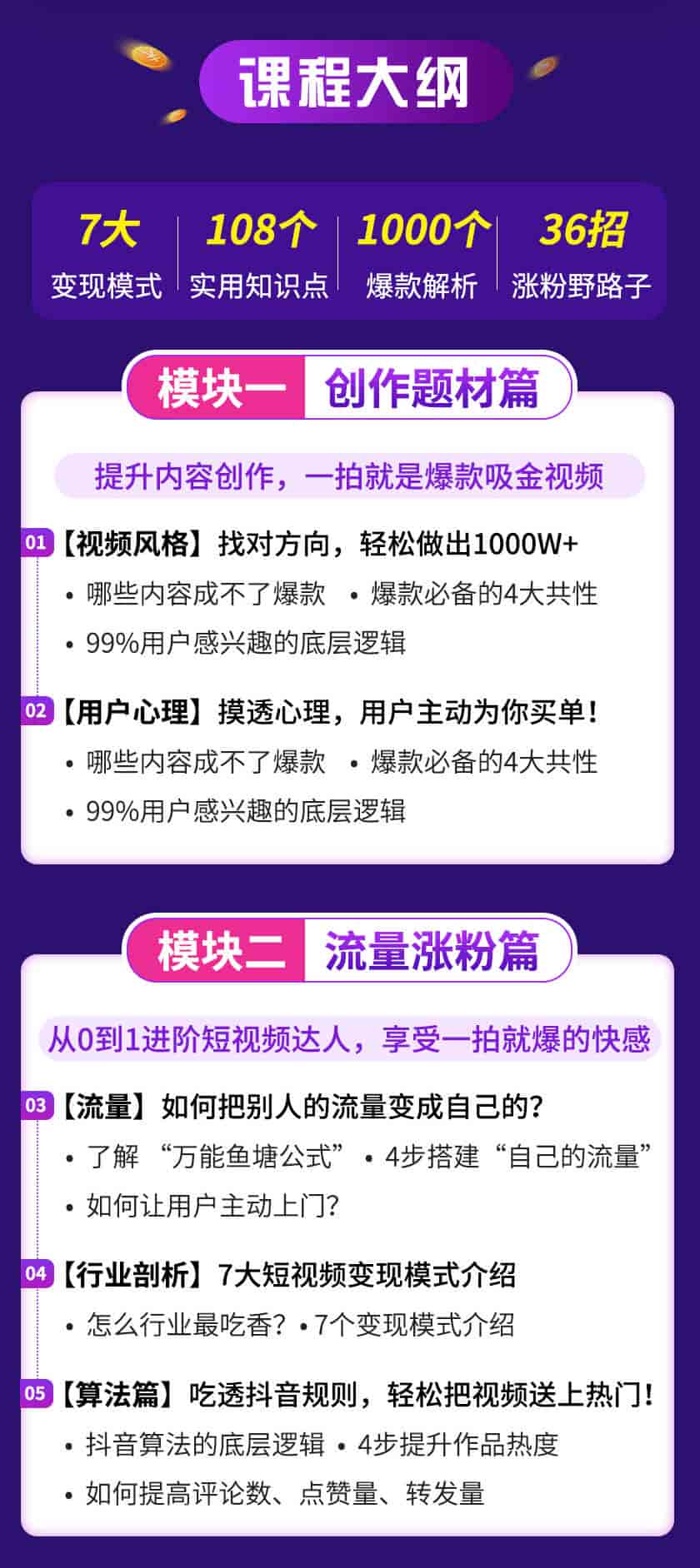 15天短视频掘金营:会玩手机就能赚钱,新手暴利玩法月入几万元(15节课)