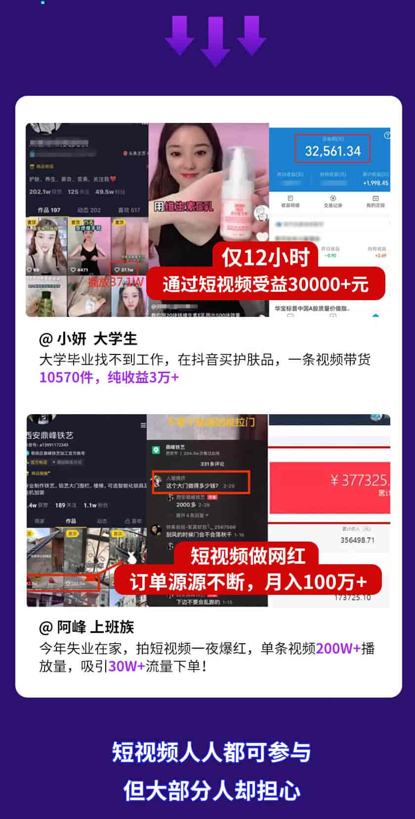 [项目营销] 15天短视频掘金营:会玩手机就能赚钱,新手暴利玩法月入几万元(15节课)
