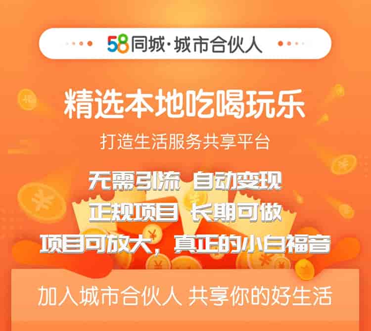 [项目营销] 58同城城市合伙人自动赚收益项目,长期稳定,项目可放大(无水印版)
