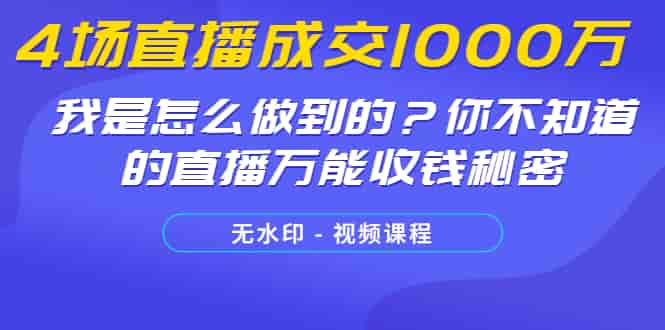 [项目营销] 4场直播成交1000万,我是怎么做到的?你不知道的直播万能收钱秘密(无水印)