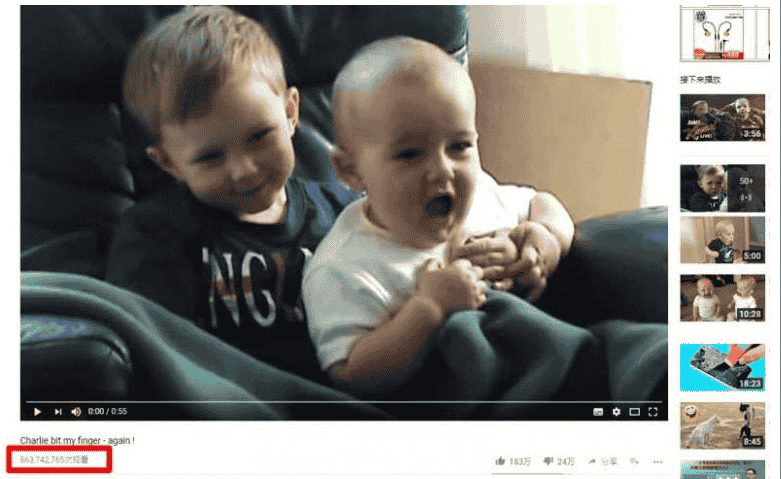 通过Youtube的广告分成计划,年入百万美金的人比比皆是,他们还有一个专门的称呼叫做Youtuber, 例如下面一个不到一分钟的小短片《查理咬了我的手指》竟然有超过8亿的浏览量,上传者就这一个视频就直接获得了超过400多万美元的广告收入分红。