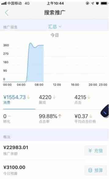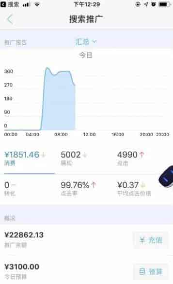 这是我一早上百度账户的消耗截图